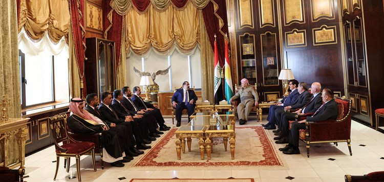 ڕۆژی یەکشەممە 28ی ئەیلوولی 2025، لە سەلاحەددین سەرۆک مەسعود بارزانی پێشوازی لە بەڕێز موسەننا ئەلسامەڕایی سەرۆکی هاوپەیمانی عەزم کرد.