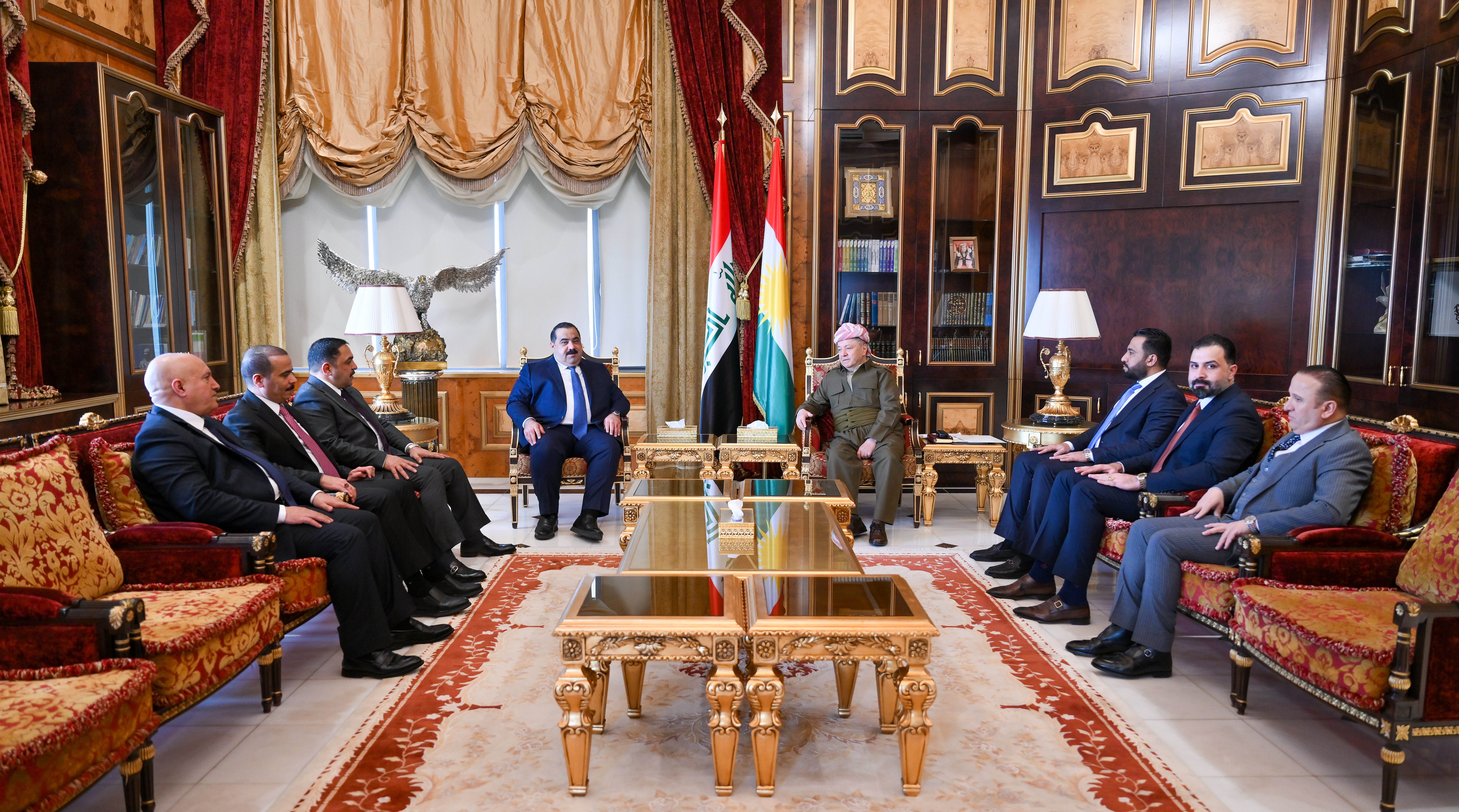 رۆژی دووشەممە، 2ی شوباتی 2026 لە پیرمام، سەرۆک مەسعود بارزانی پێشوازی لە بەڕێز موسەننا سامەرائی سەرۆکی هاوپەیمانێتی عەزم کرد.