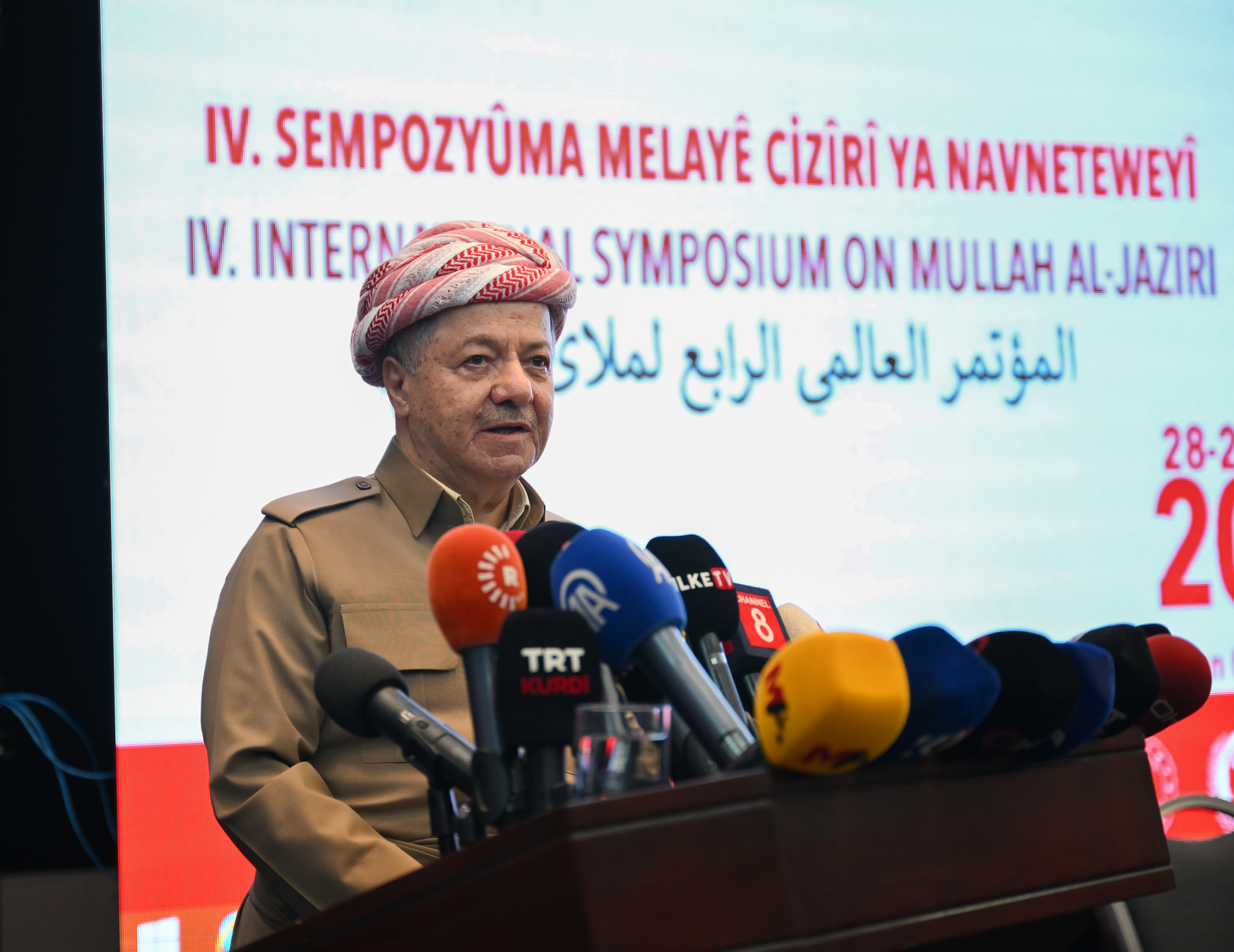 Roja Şemiyê 29ê Mijdara 2025an, di serdanekê de Serok Barzanî gihîşt parêzgeha Şirnexê û ji aliyê Cîgirê Wezîrê Navxwe yê Tirkiyeyê Munir Karaloglu, Waliyê Şirnexê Birol Ekici û Berpirsê Şaredariyên Şirnexê Mehmet Yarka ve bi germî hat pêşwazîkirin. Serok Barzanî li wir da beşdariya çaremîn sempozyûma Melayê Cizîrî li parêzgeha Şirnexê bû, ku bi amadebûna hejmareke zêde ya zana, lêkolîner, akademîsyen û berpirsên siyasî û îdarî birêve çû û gotarek pêşkêşî amadebûyan kir.