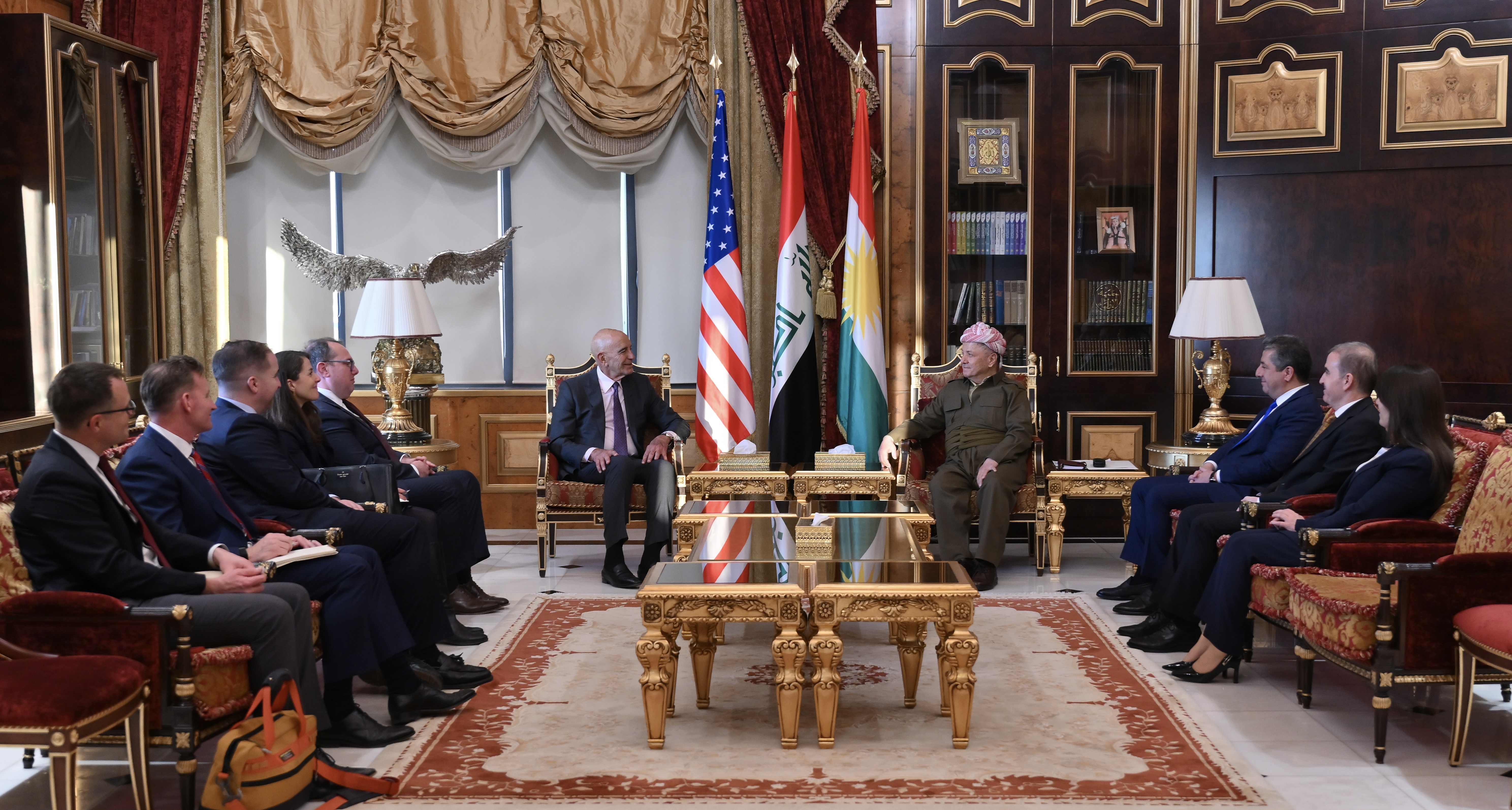 ڕۆژی دووشەممە 23ی شوباتی 2026 لە پیرمام، سەرۆك مەسعود بارزانی پێشوازی لە بەڕێز تۆم باراك نوێنەری سەرۆك ترامپ بۆ كاروباری سووریا و باڵیۆزی ئەمەریكا لە توركیا كرد.
