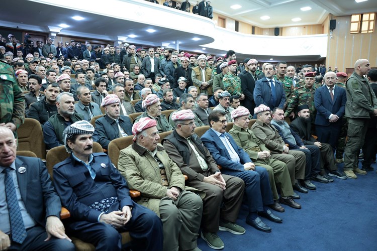 ڕۆژی چوارشەممە 25ی ئاداری 2026، سەرۆک مەسعود بارزانی بەشداری لە پرسەی شەهیدانی پێشمەرگە لە شاری سۆران کرد، کە لە ئەنجامی پەلاماری مووشەکەکانی ئێران ڕۆژی سێشەممە 24ی ئاداری 2026 بۆ سەر بارەگاکانی هێزی پێشمەرگەی کوردستان لە دەڤەری سۆران شەهیدبوون.