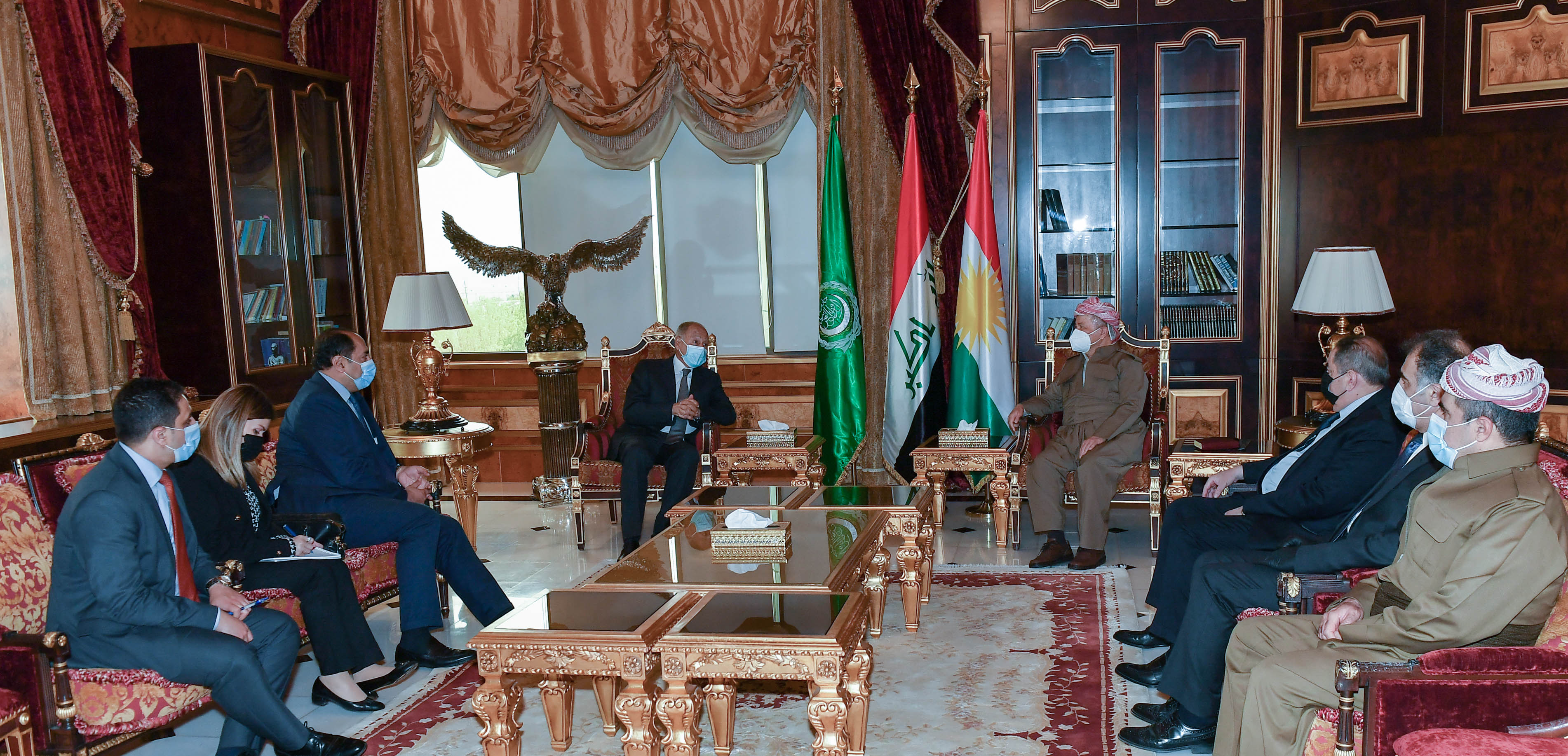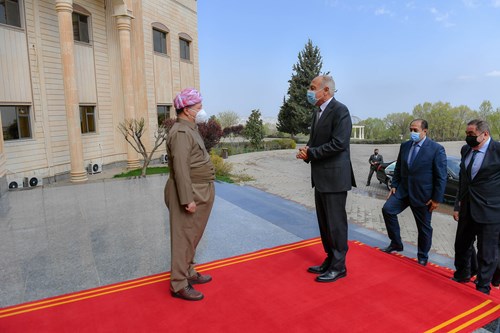 ڕۆژی یەکشەممە ۱۱ـی نیسانی ۲٠۲۱ لە سەلاحەددین سەرۆک مەسعود بارزانی پێشوازی لە ئەحمەد ئەبولغەیت ئەمینداری گشتیی کۆمکاری عەرەبی و شاندێکی یاوەری کرد.